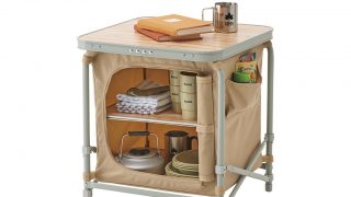 テーブル ロゴスのモバイルラックテーブルは収納棚にもなって便利!